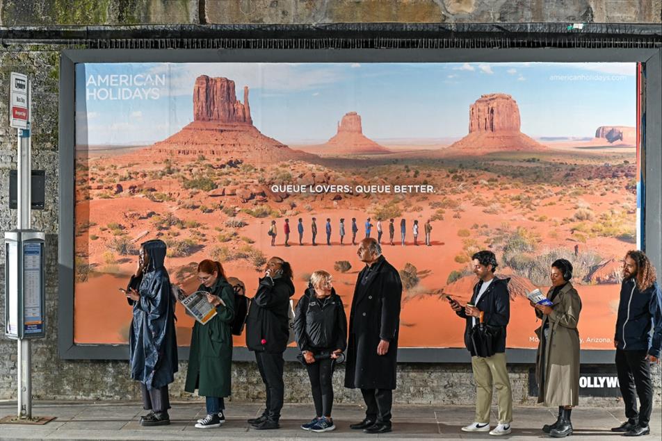 American Holidays has created a tongue-in-cheek outdoor ad playing on the stereotype that Brits like to queue.